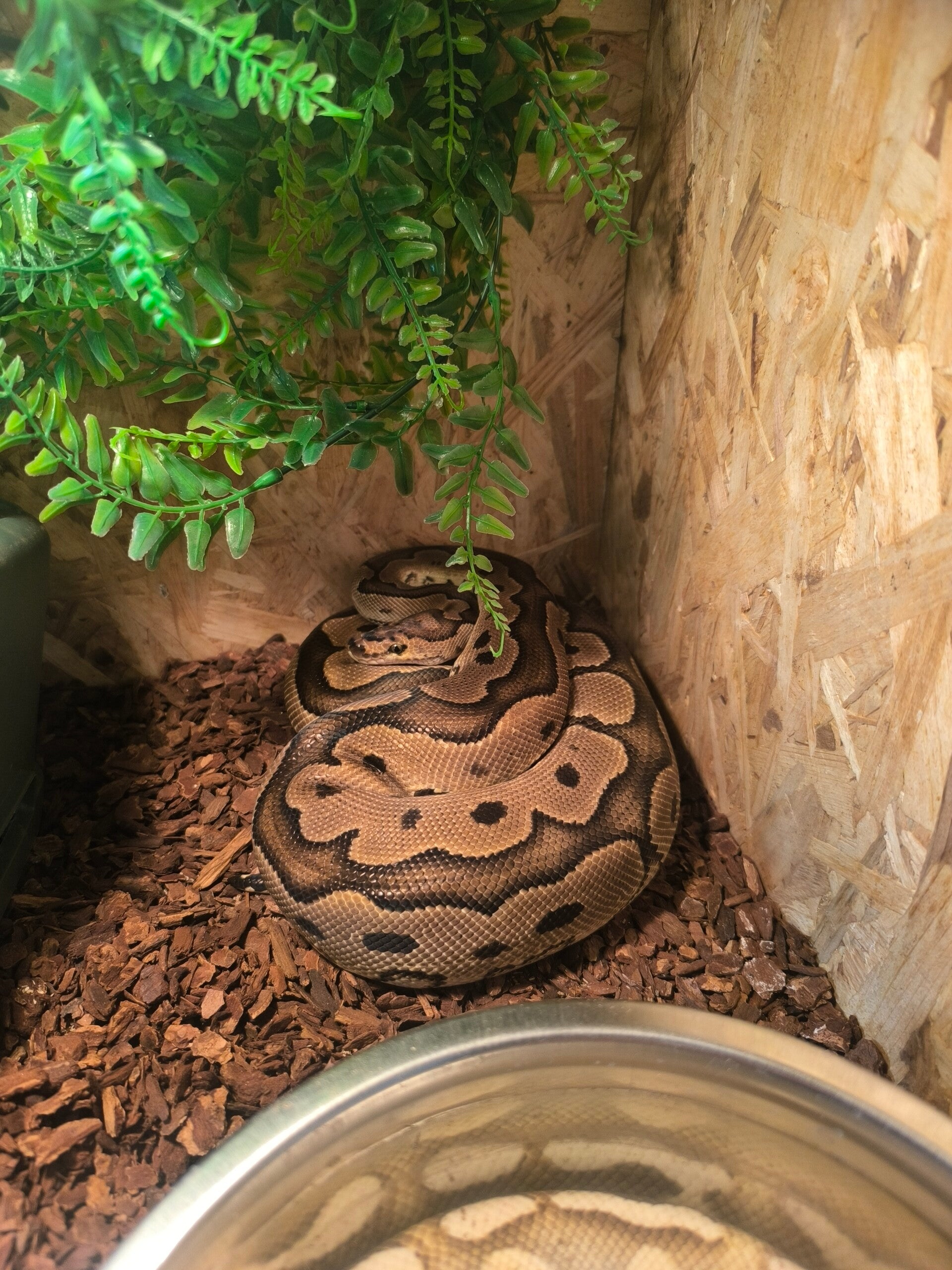 Garry is onze Calico Clown Koningspython. Met haar mooie bruine tekening ziet ze eruit alsof ze zo in de natuur gevonden kan worden. Haar unieke Calico Clown gen maakt haar een bijzondere verschijning en een waardevolle aanwinst voor Herpetia.