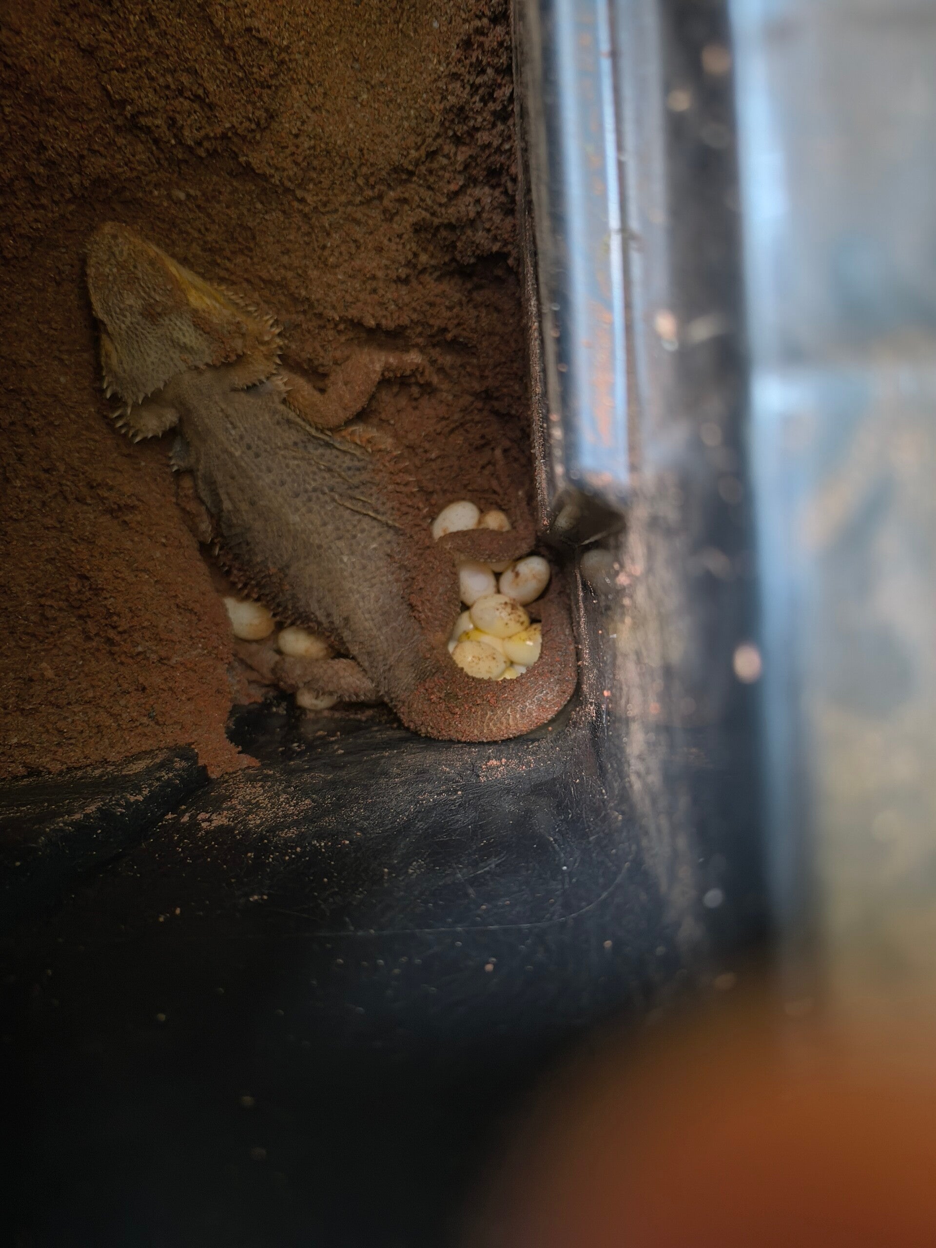 Baardagamen planten zich voort door eieren te leggen. Het vrouwtje kan tot 20 eieren per legsel produceren en de incubatietijd is ongeveer 60 dagen. Ze zijn bekend om hun broedzorg en bescherming van de eieren.